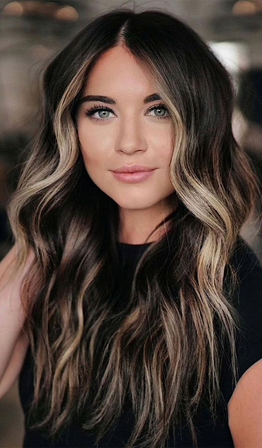 Echthaar Perücke maschinell gefertigt – Langes Wellenhaar in Dunkelbraun mit Blond Highlights