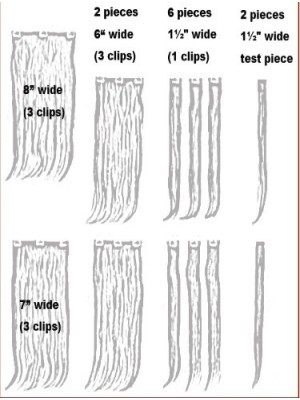 Satz Inhalte: Nummer von Schussfaden: 12, Nummer von Clips:18Ein 8 Inch (20cm) breit Schussfaden - 3 Clip jeder SchussfadenEin 7 Inch (17.5cm) breit Schussfaden - 3 Clip jeder SchussfadenZwei 6 Inch (15cm) breit Schussfaden - 3 Clip jeder SchussfadenSechs 1.5 Inch (3.75cm) breit Schussfaden - 1 Clip jeder SchussfadenZwei 1.5 Inch(3.75cm) breit Test Schussfaden-kein Clips