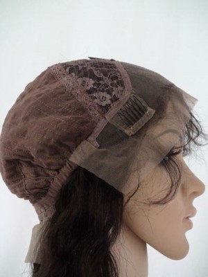 Material: Remy EchthaarAngezeigte Farbe: 4Kappenstruktur: SpitzefrontHaartextur: WelligHaar Länge: 16"Haar Gewicht: 140g