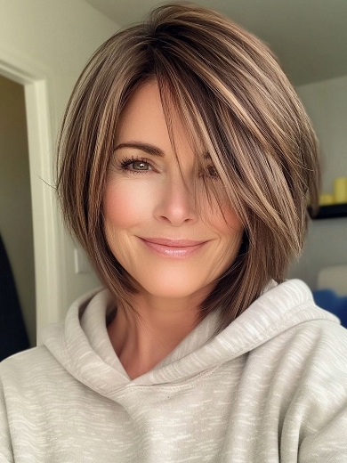 Lace Front Echthaar Perücke Damen – Kurzer Bob mit Seitenscheitel & Strähnen – Natürlich & Atmungsaktiv
