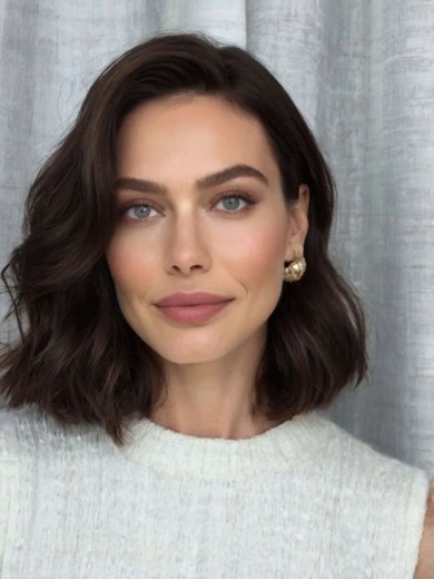 Kurze Echthaar-Perücke für Frauen – Dunkelbraun, Natürlicher Bob-Schnitt, Maschinengefertigt
